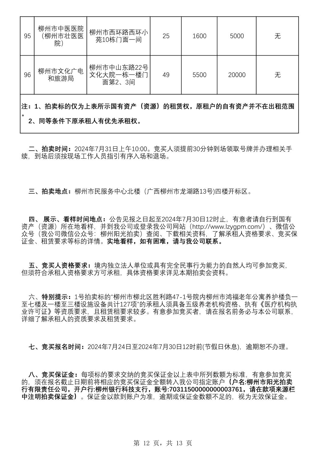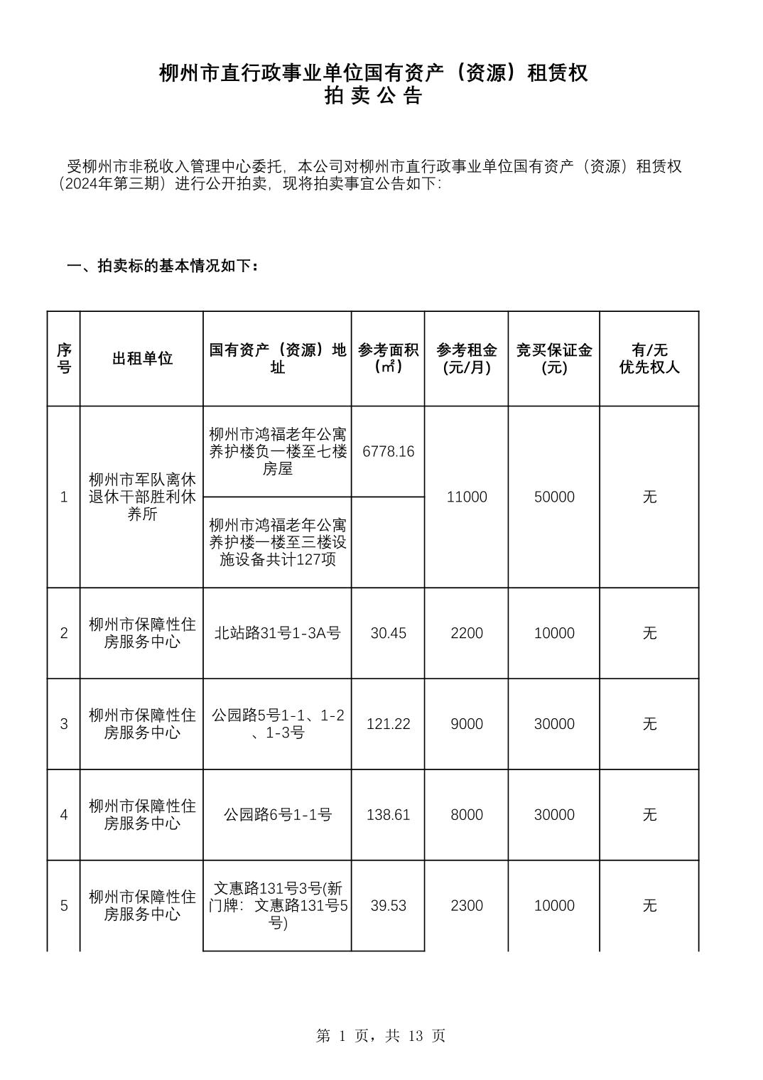 柳州市直行政事业单位国有资产(资源)租赁权拍卖公告