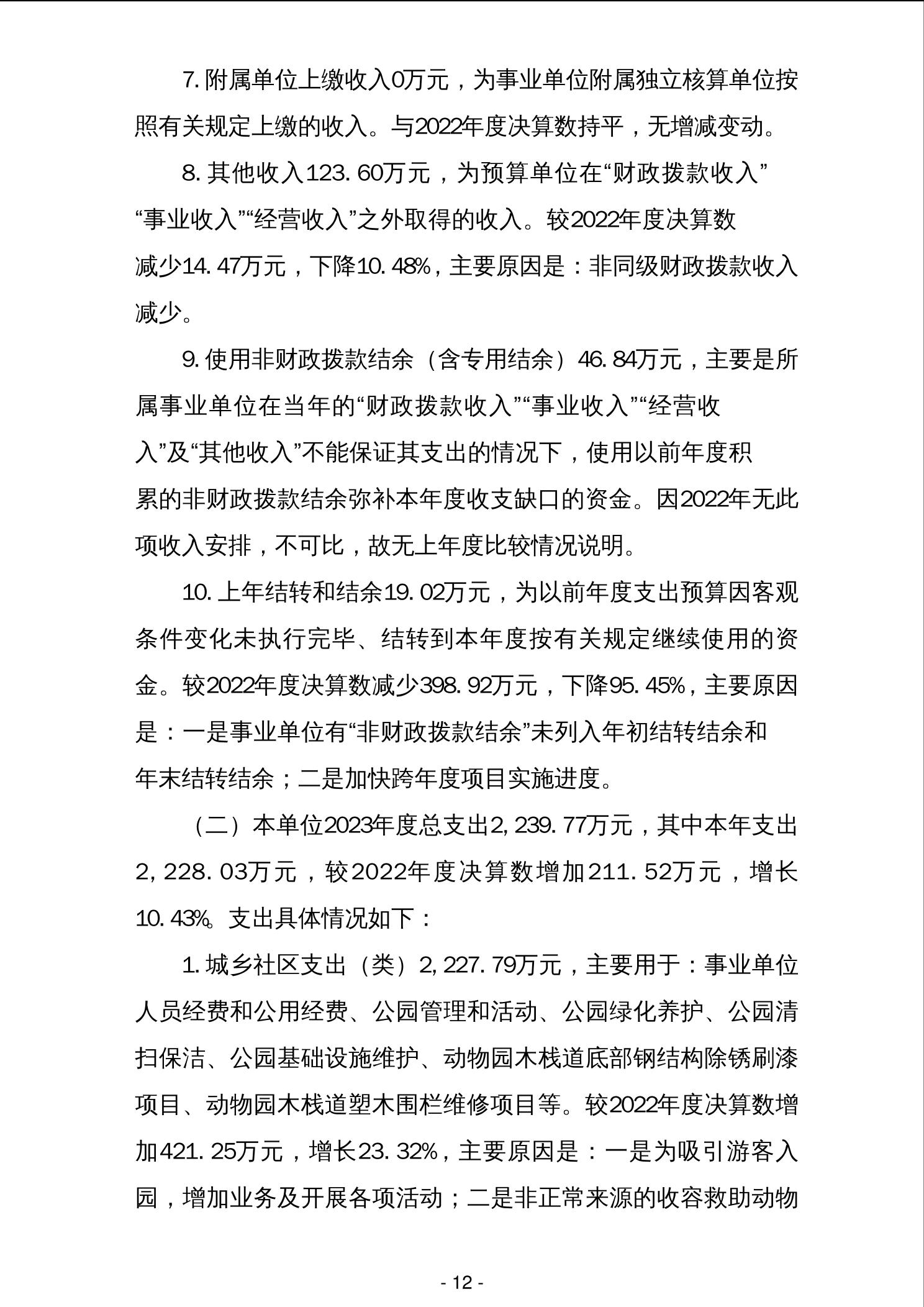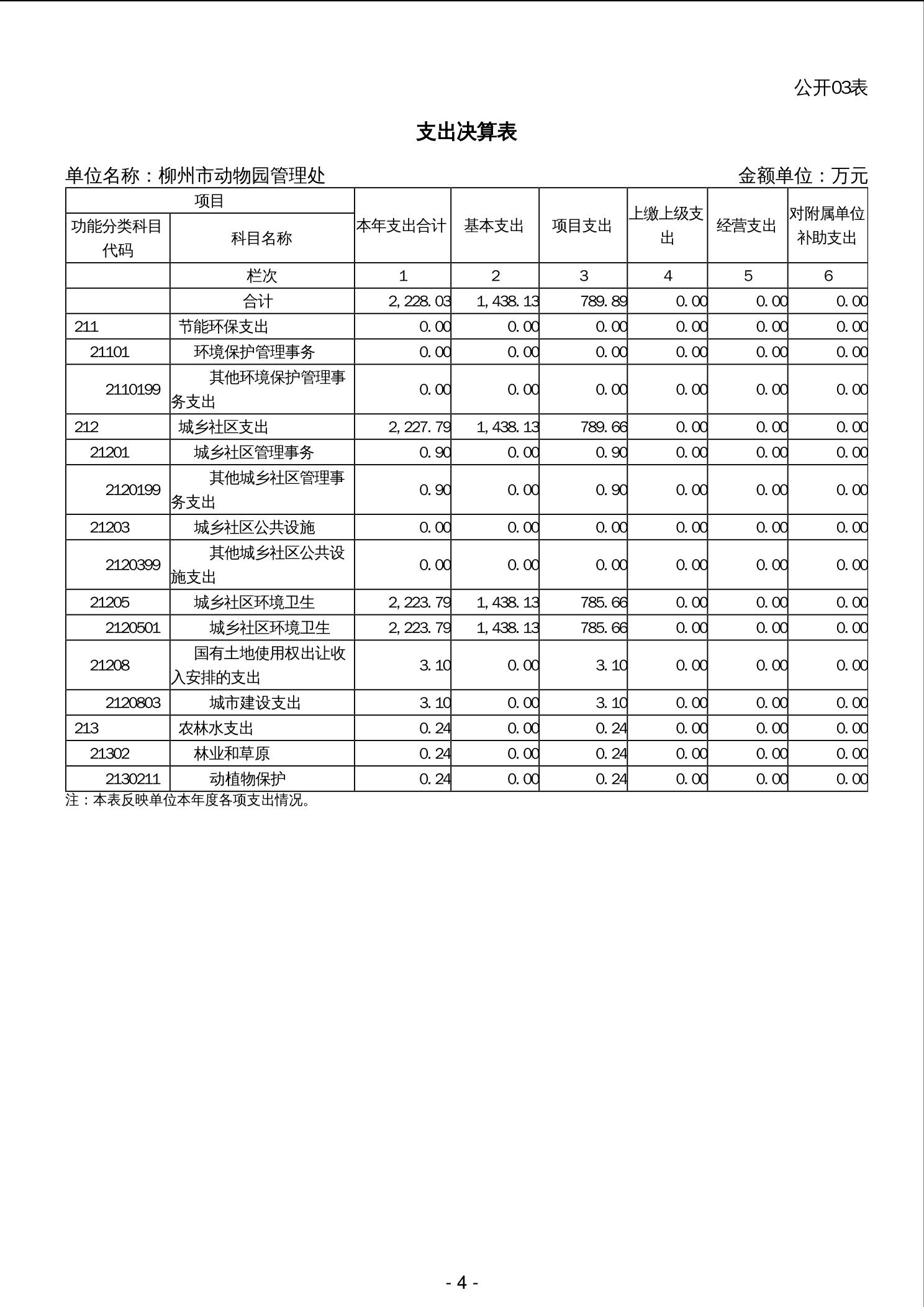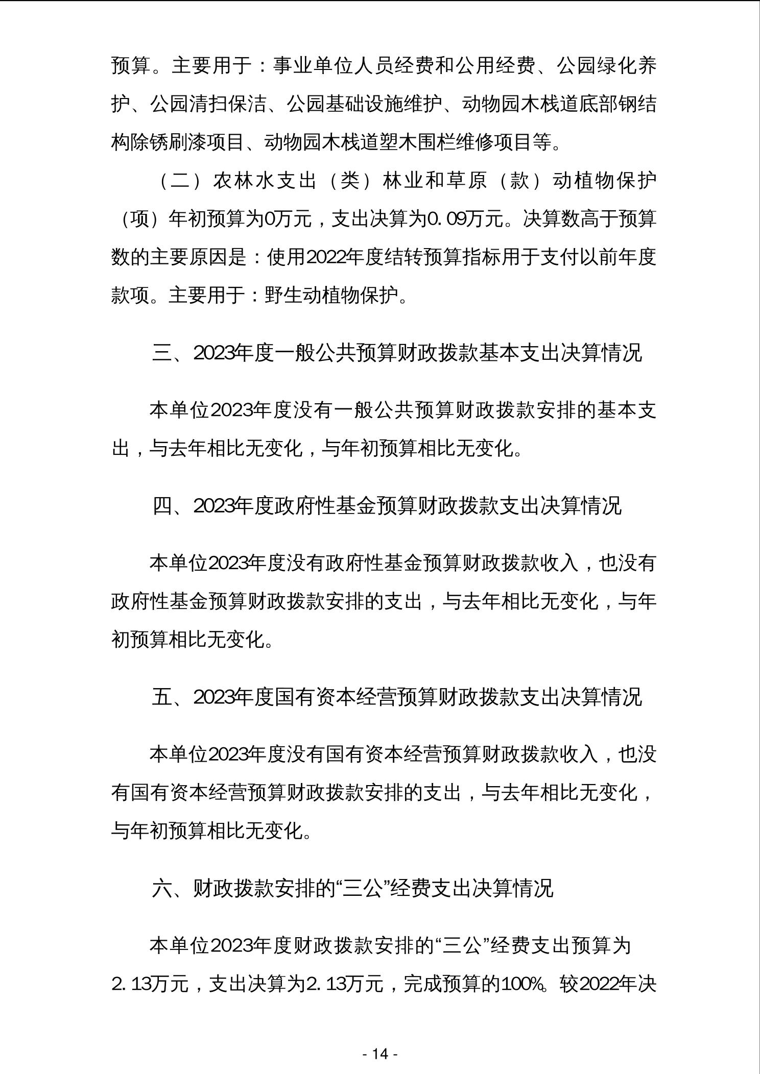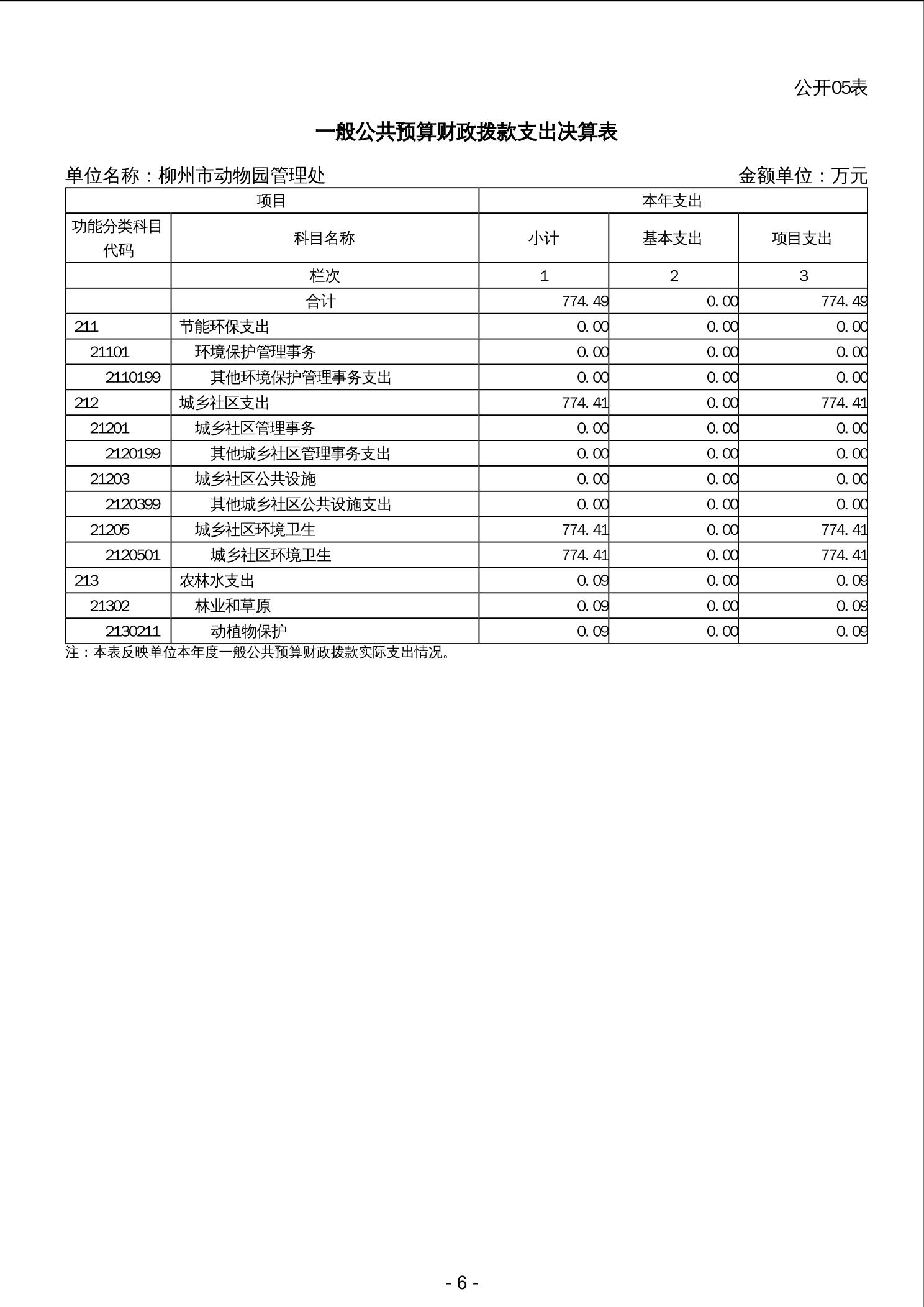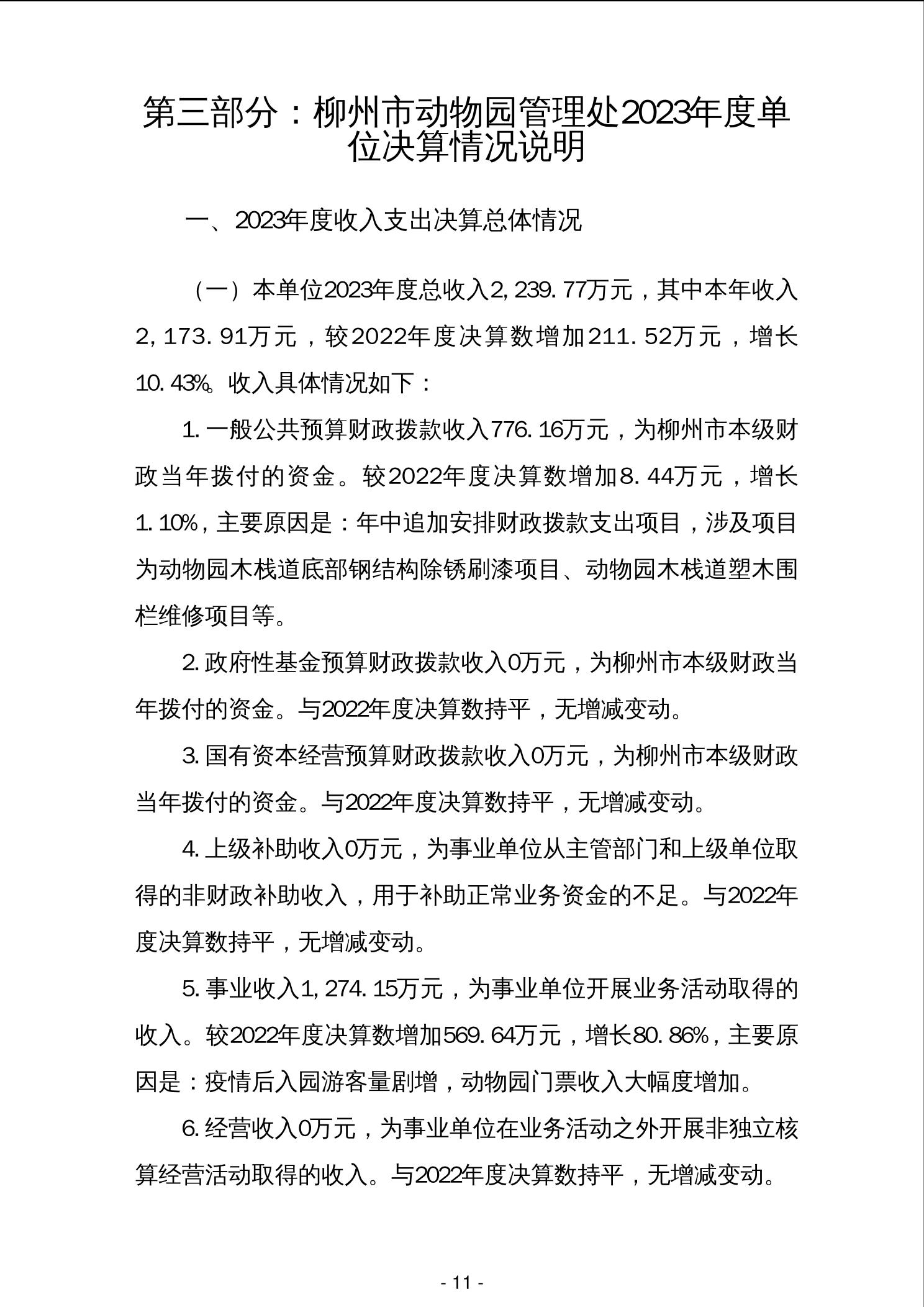 柳州市动物园管理处2023年度单位决算