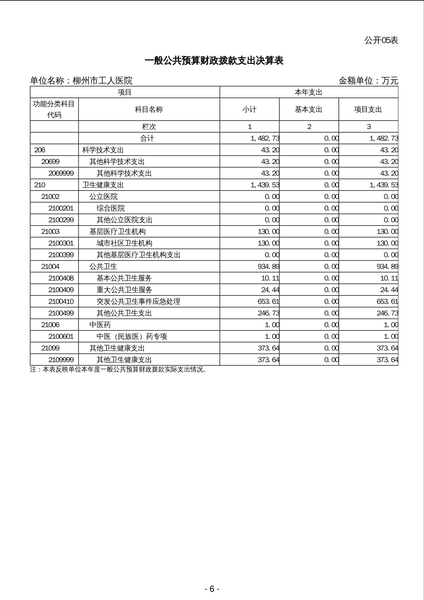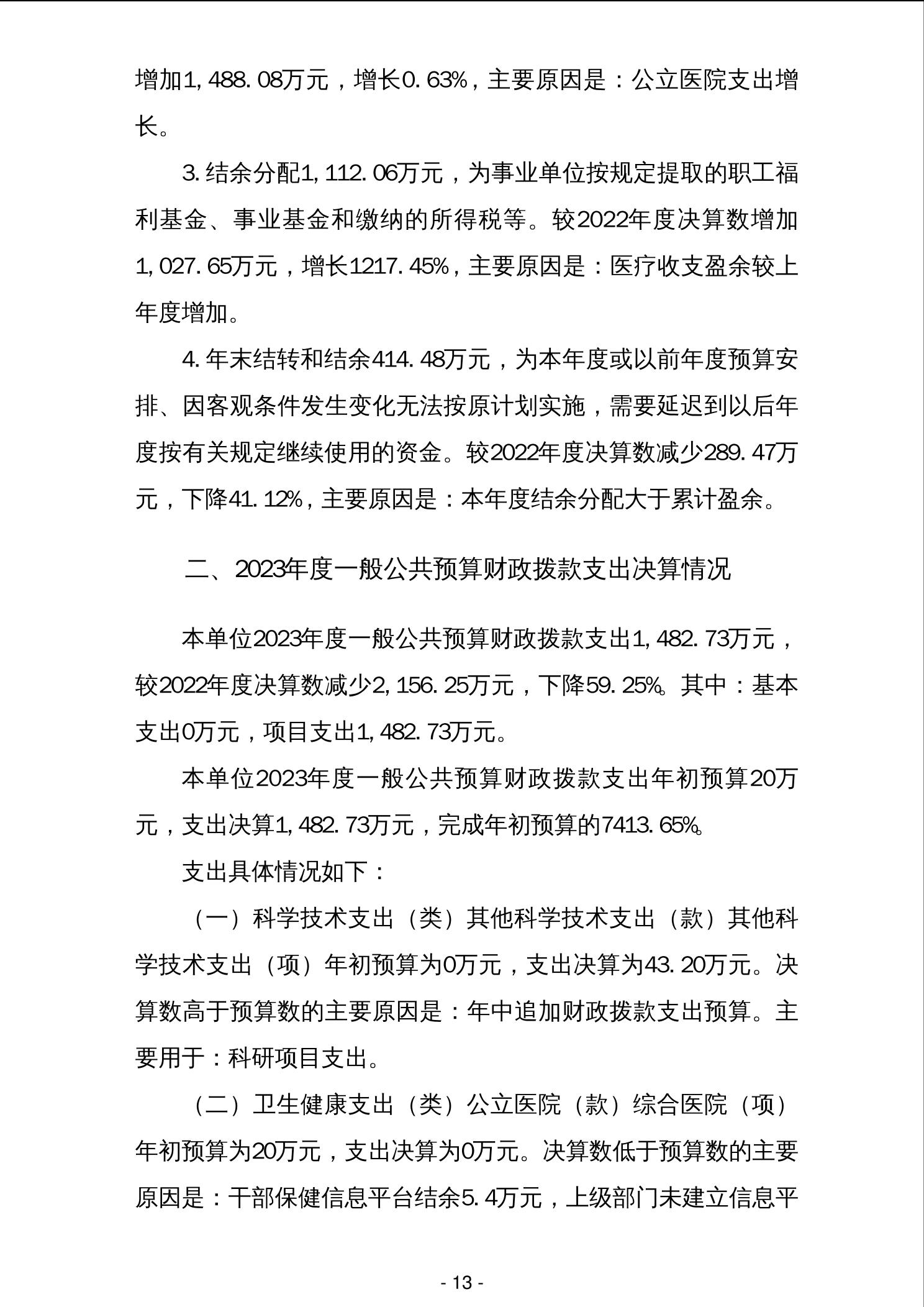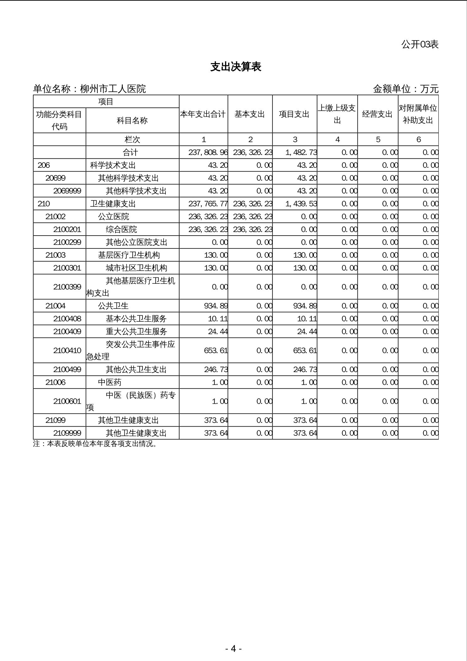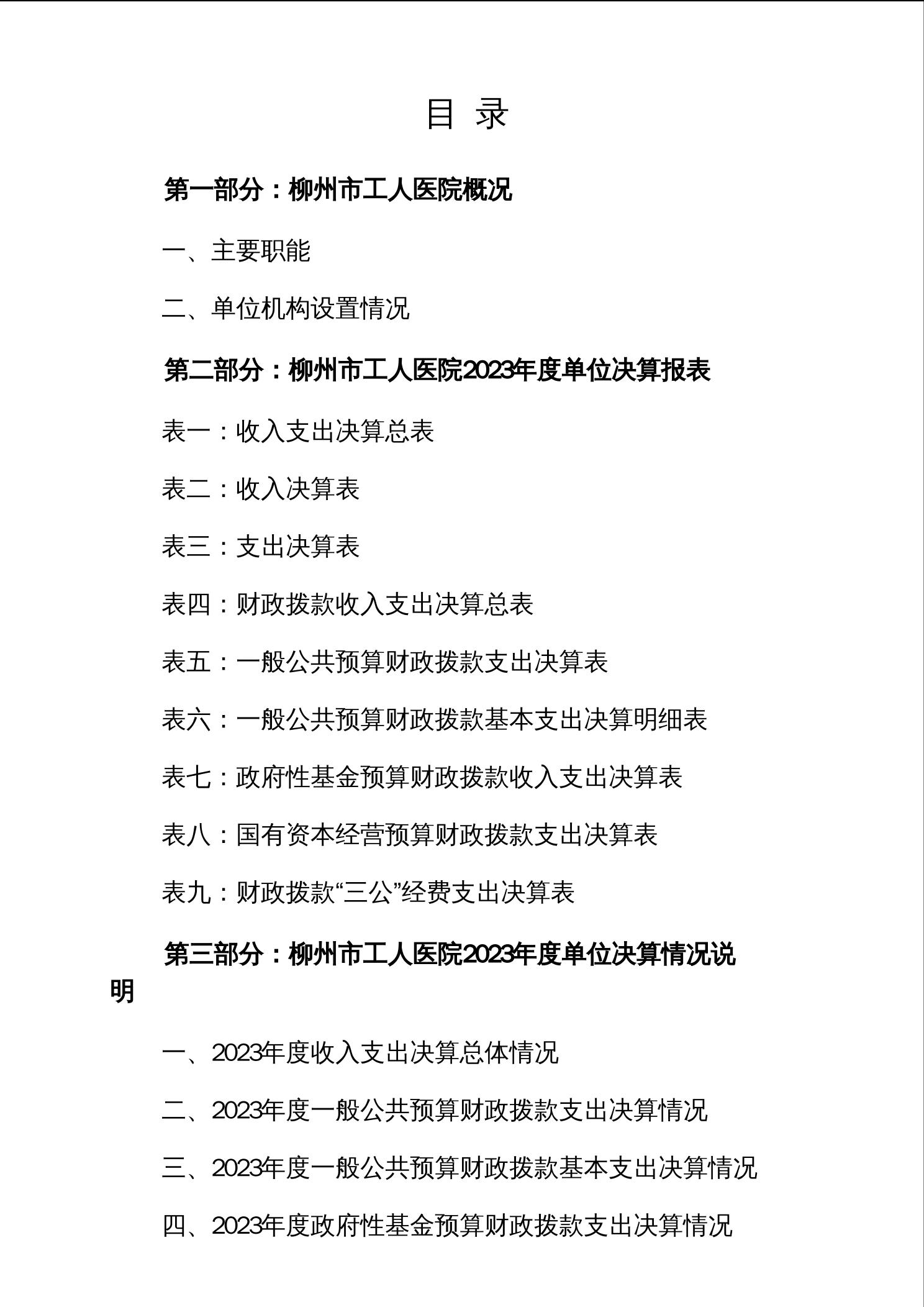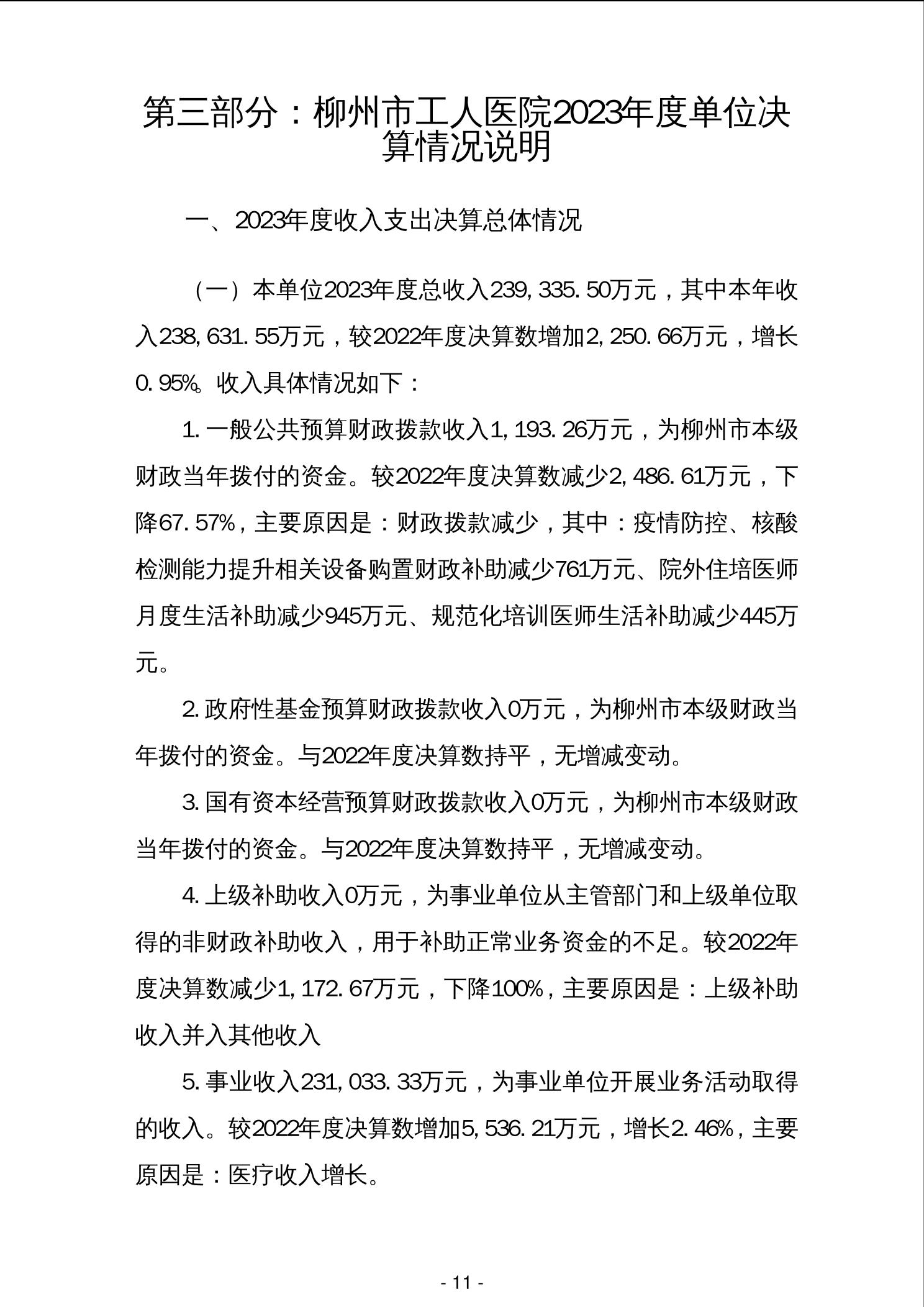柳州市工人医院2023年度单位决算