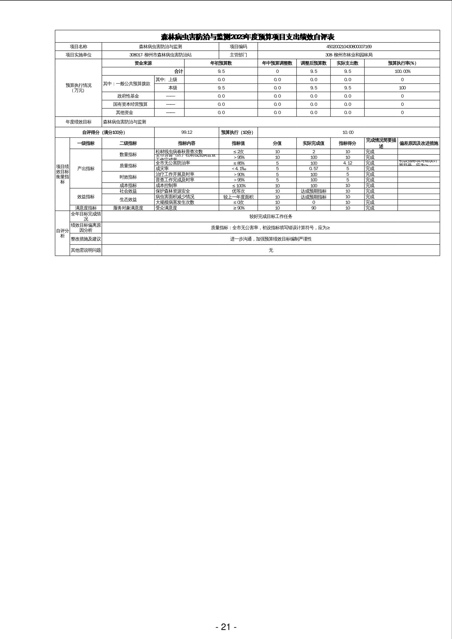 项目支出绩效自评表_308017柳州市森林病虫害防治站_450200210430800007169森林病虫害防治与监测_202408021552400.xlsx