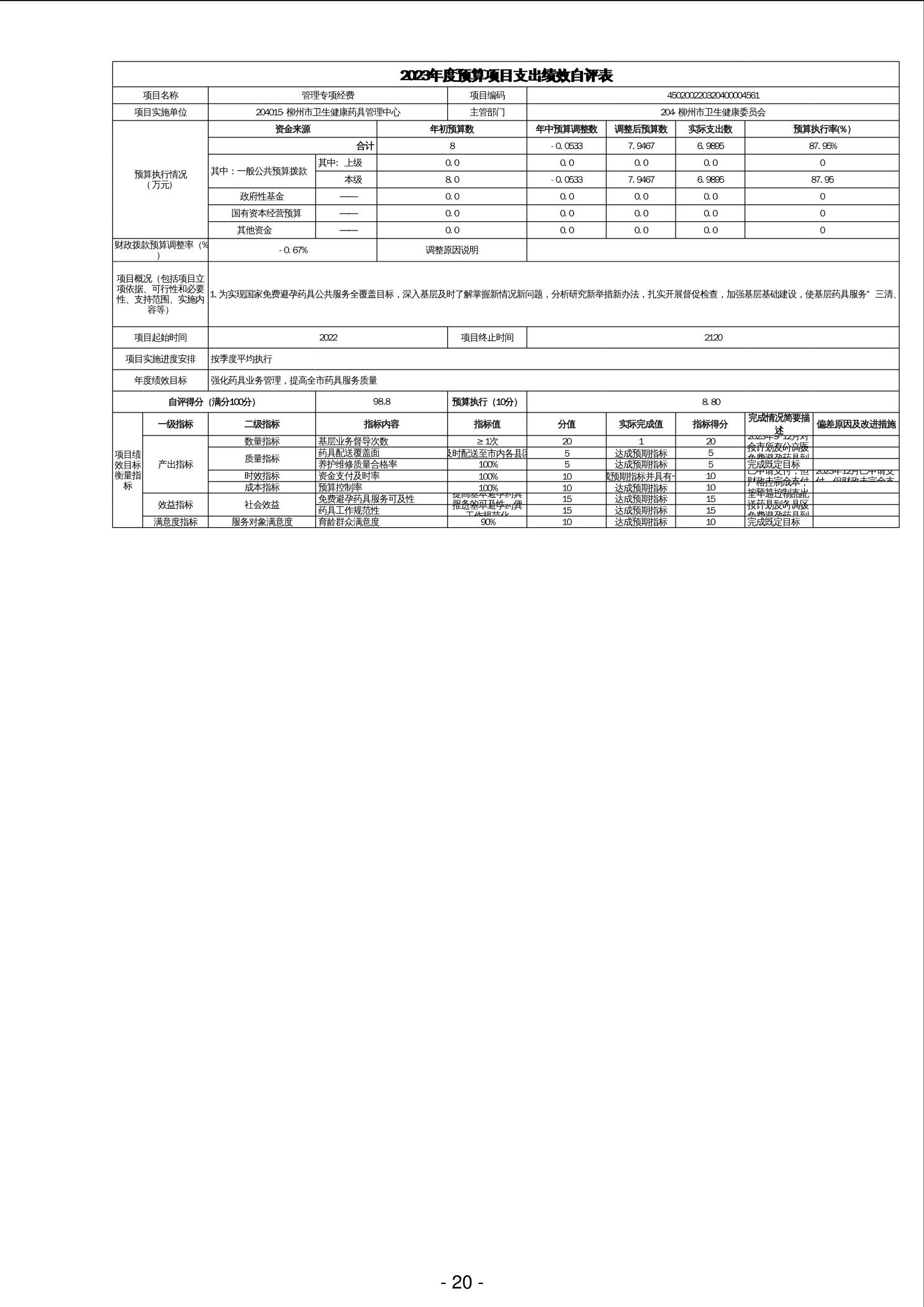 项目支出绩效自评表_204015柳州市卫生健康药具管理中心_450200220320400004561管理专项经费_202406261616100.pdf
