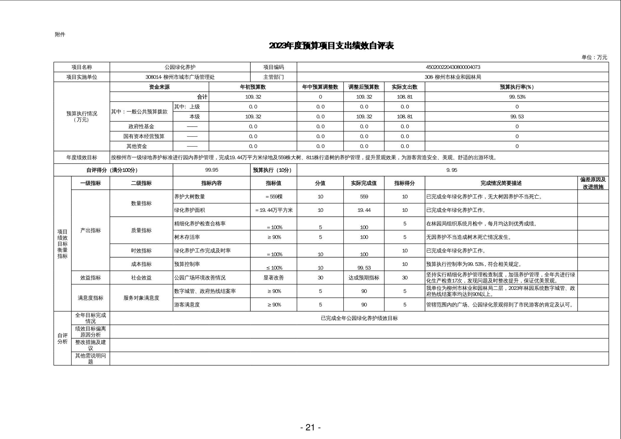 柳州市城市广场管理处2023年度单位决算