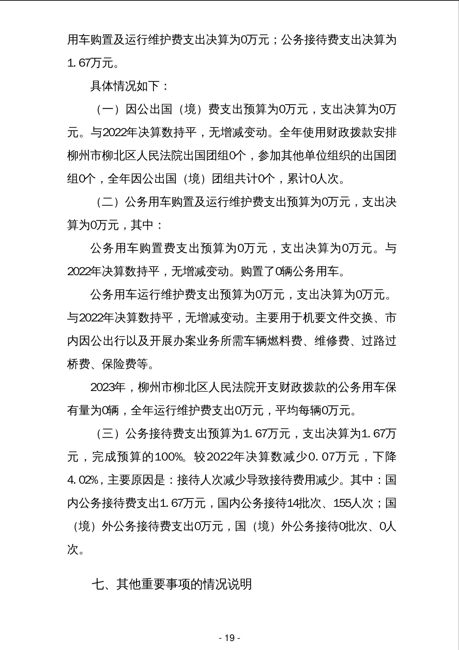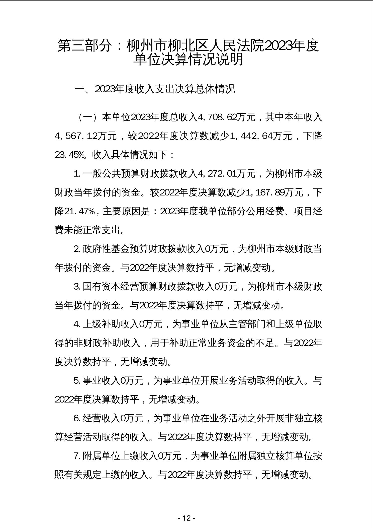 柳州市柳北区人民法院2023年度单位决算