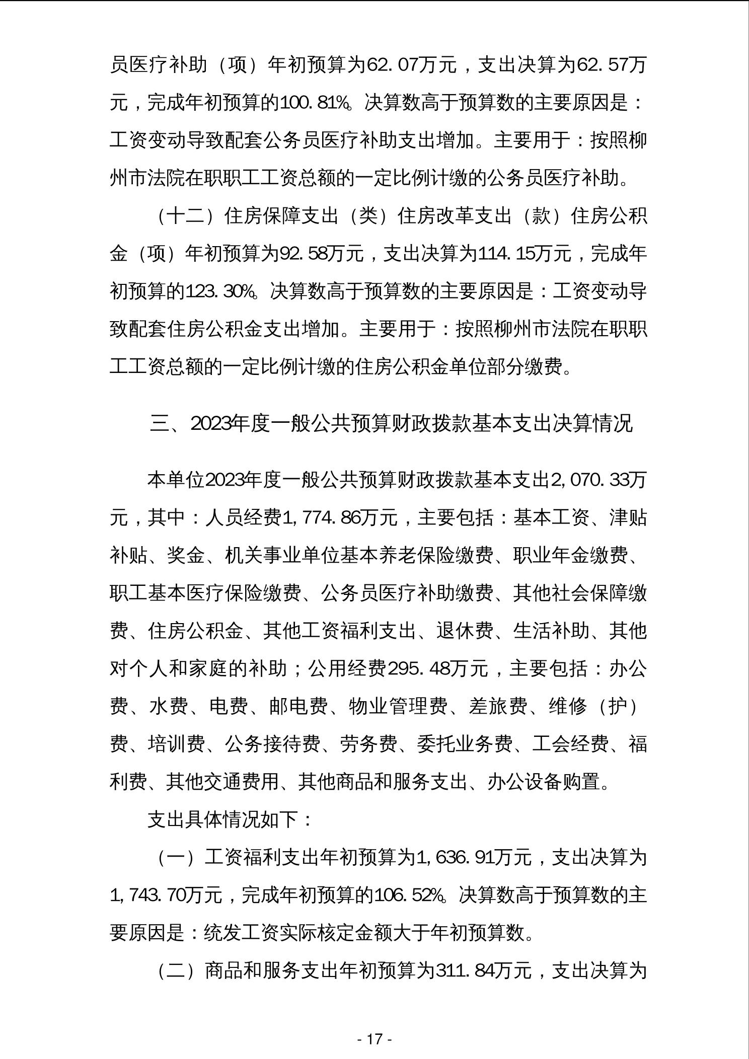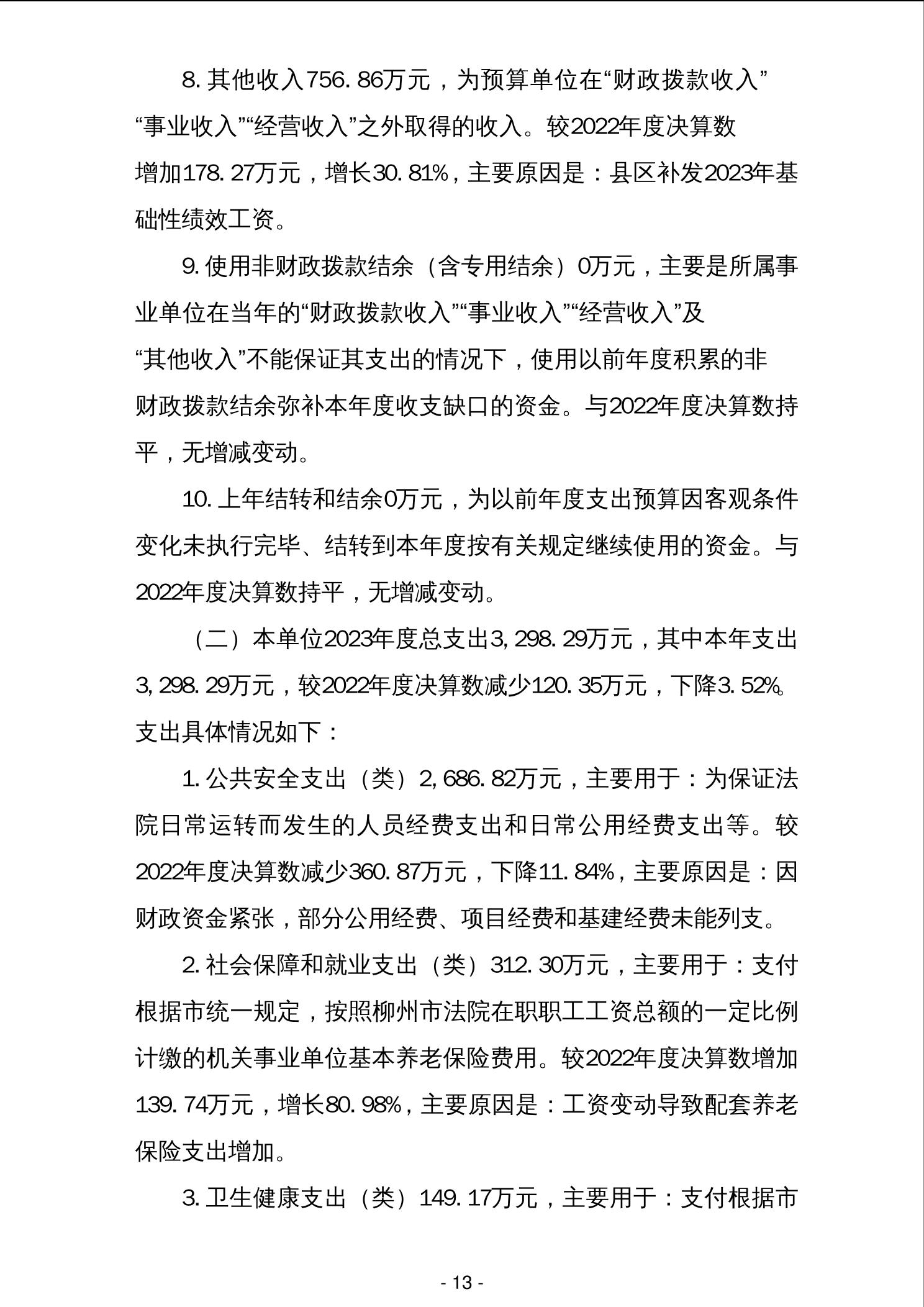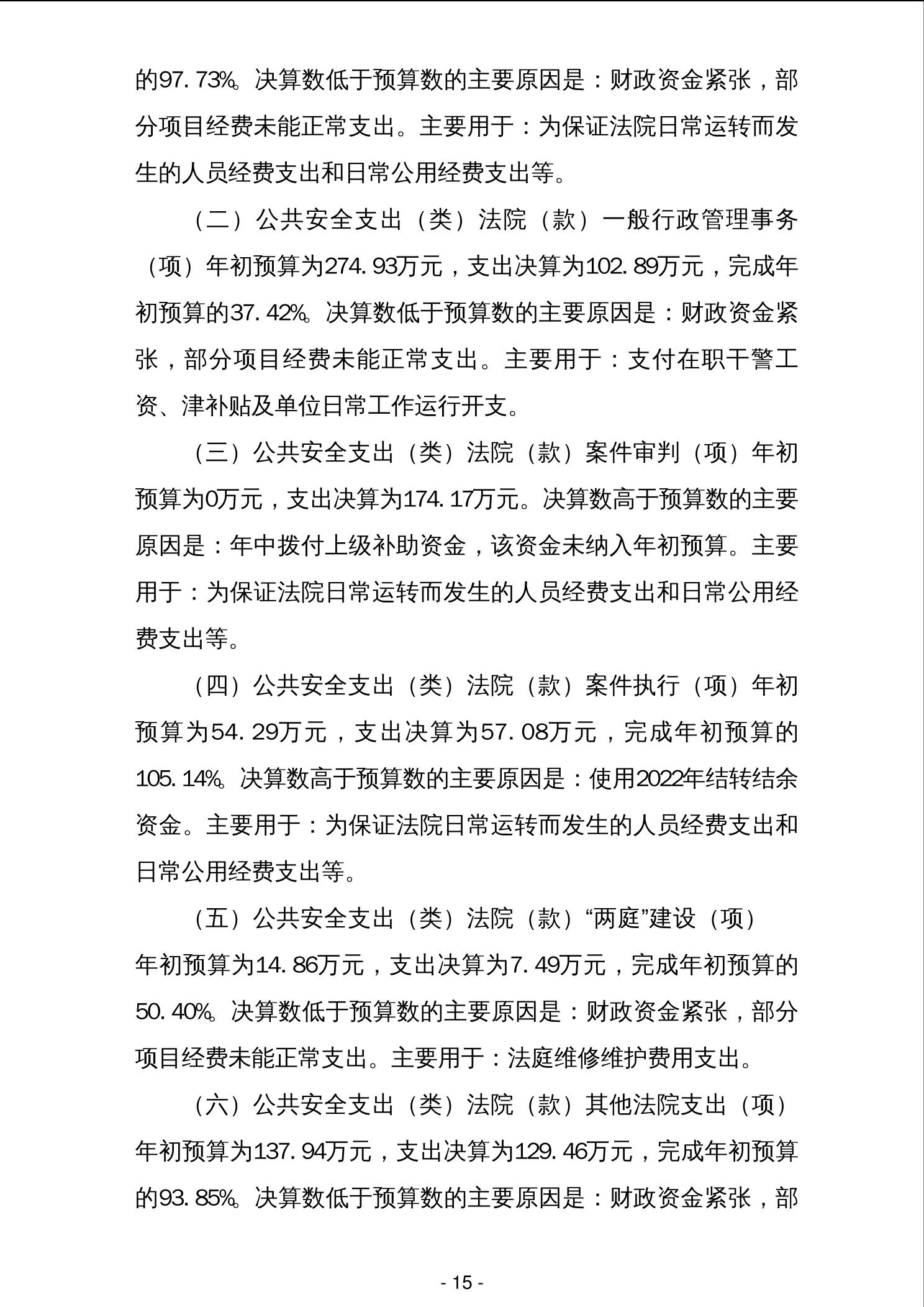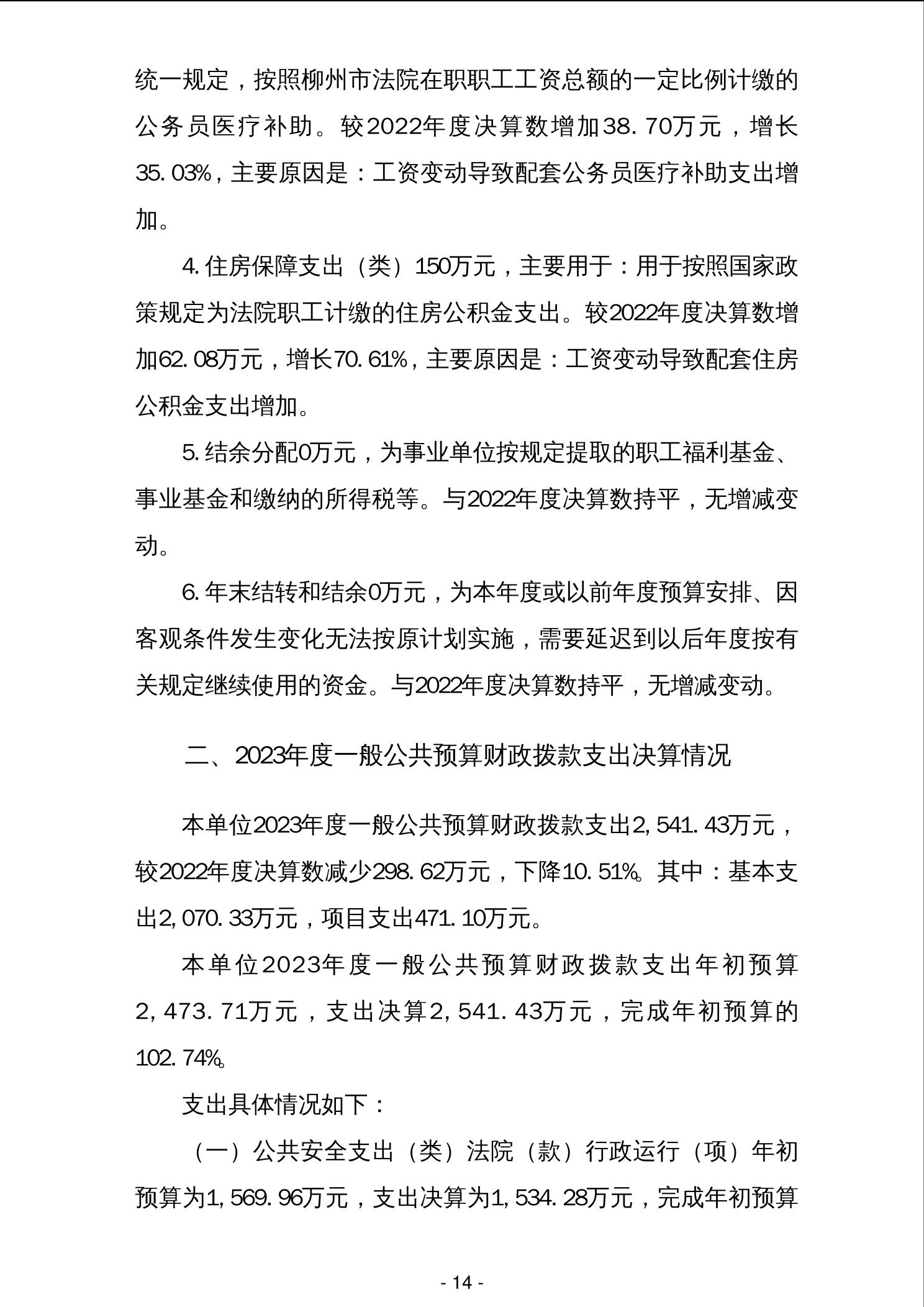 柳城县人民法院2023年度单位决算