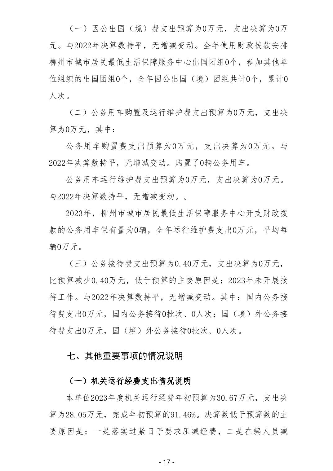 202011柳州市城市居民最低生活保障服务中心2023年度单位决算