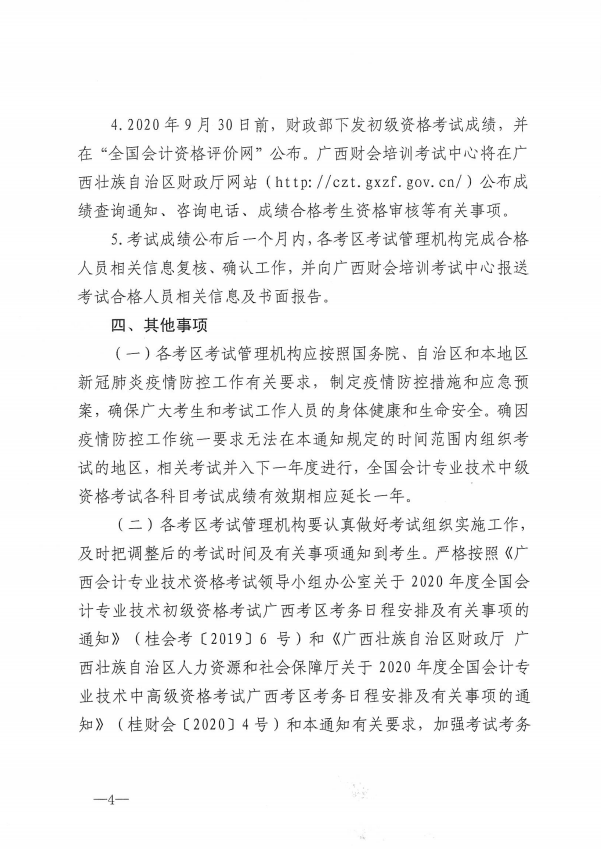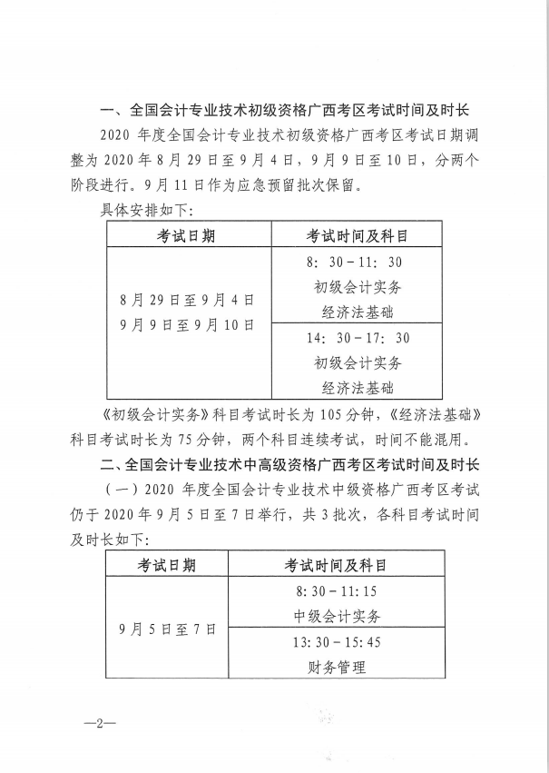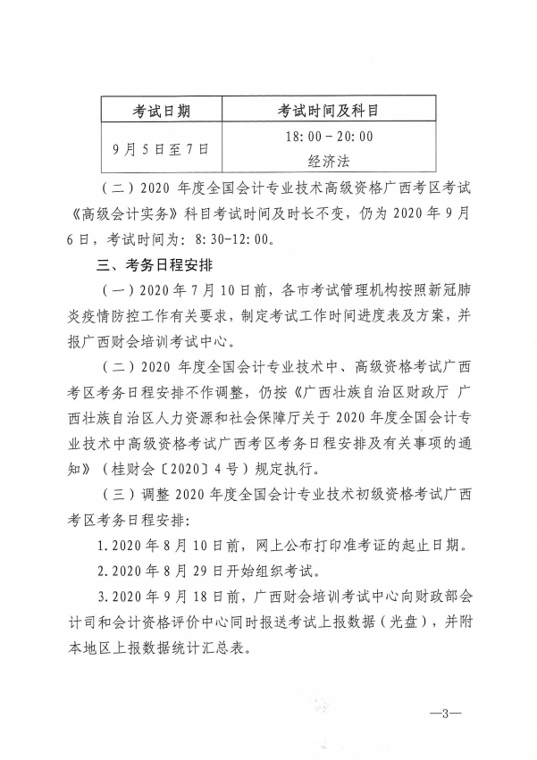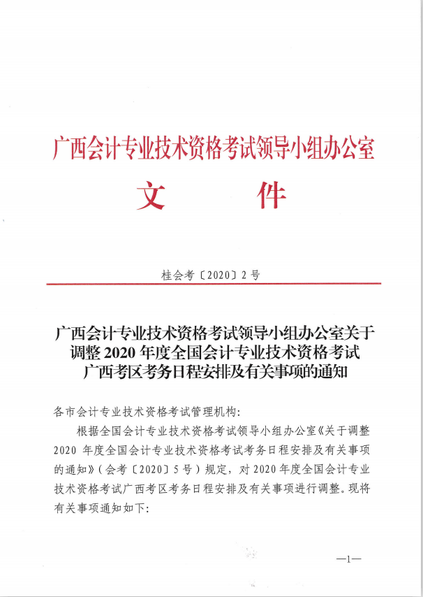 广西会计专业技术资格考试领导小组办公室关于调整2020年度全国会计专业技术资格考试广西考区考务日程安排及有关事项的通知