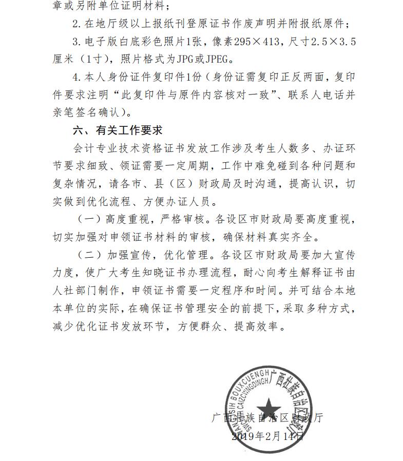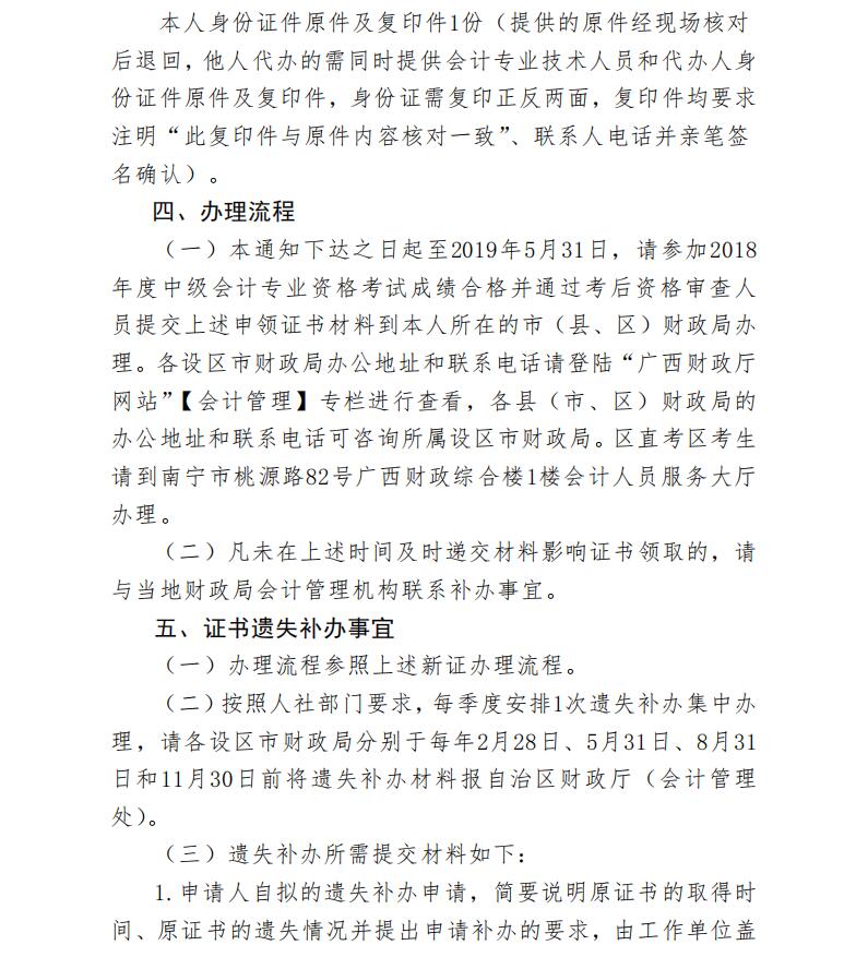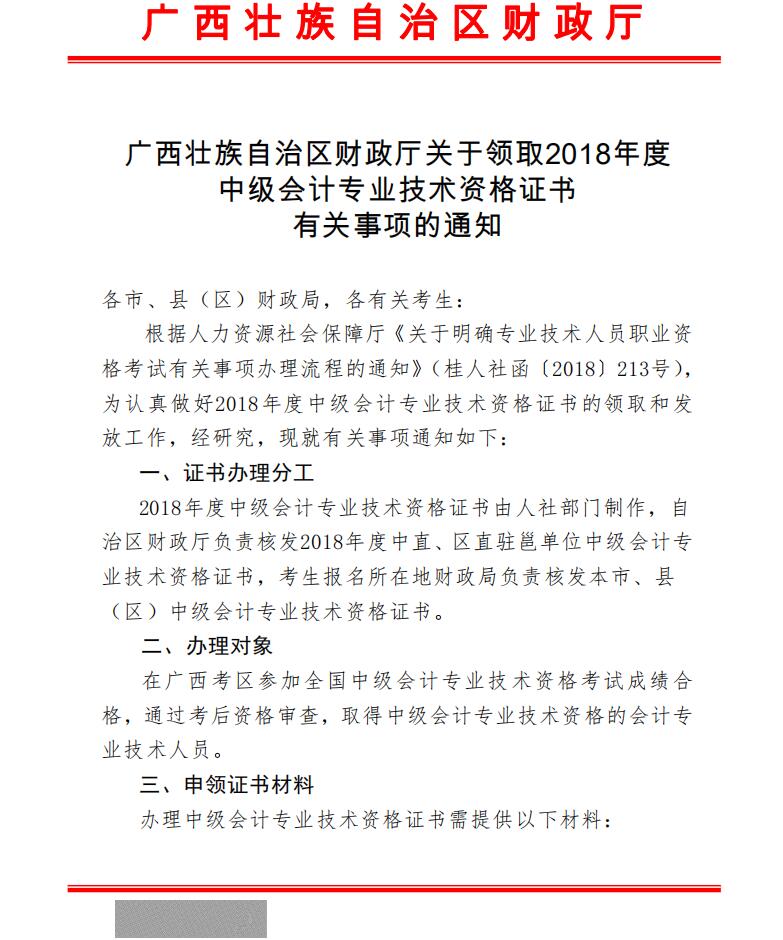 广西壮族自治区财政厅关于领取2018年度广西会计专业技术资格中级职称证书有关事项的通知