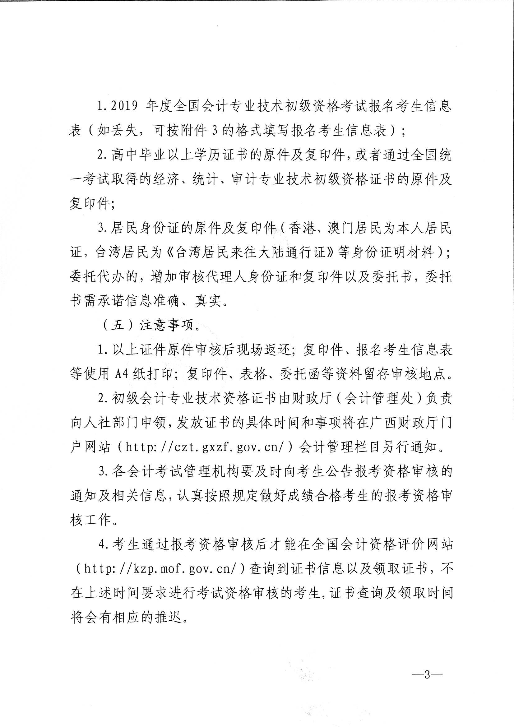 关于公布广西2019年度全国会计专业技术初级资格考试成绩、报考资格审核及有关事项的通知