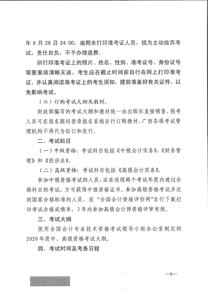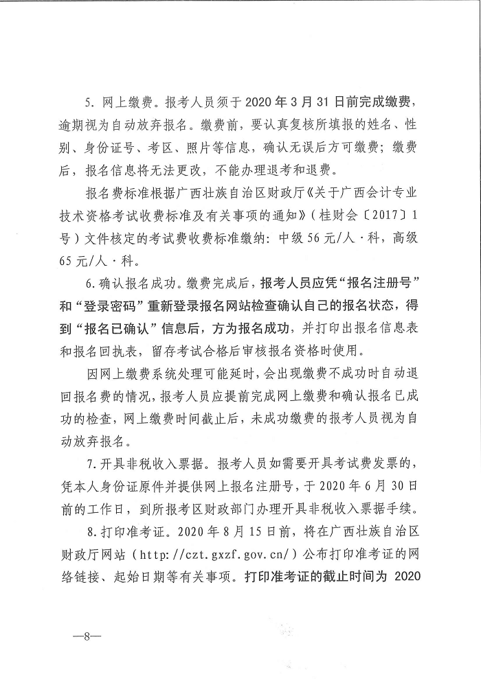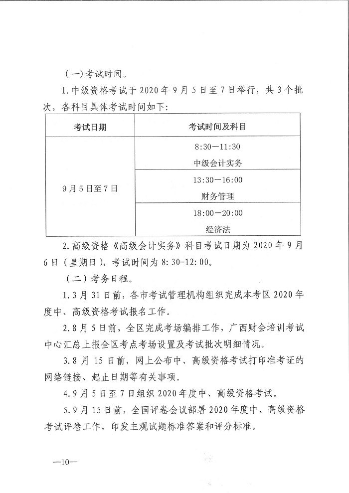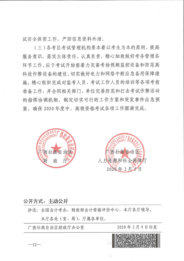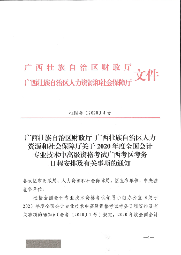 广西壮族自治区财政厅_广西壮族自治区人力资源和社会保障厅关于2020年度全国会计专业技术中高级资格考试广西考区考务日程安排及有关事项的通知
