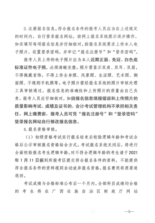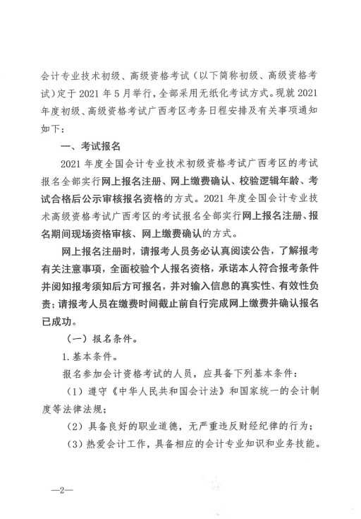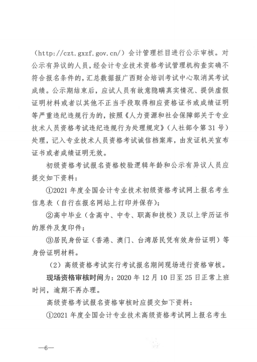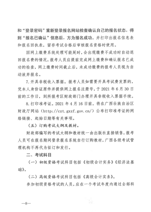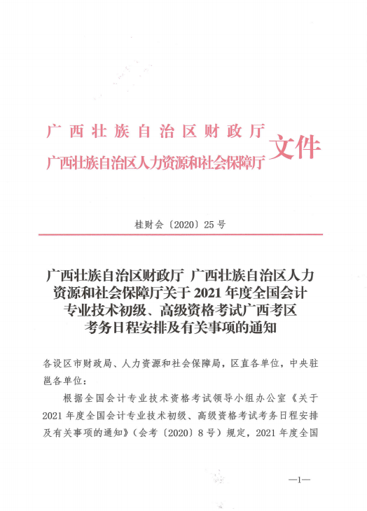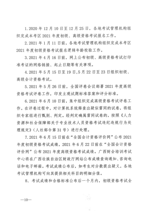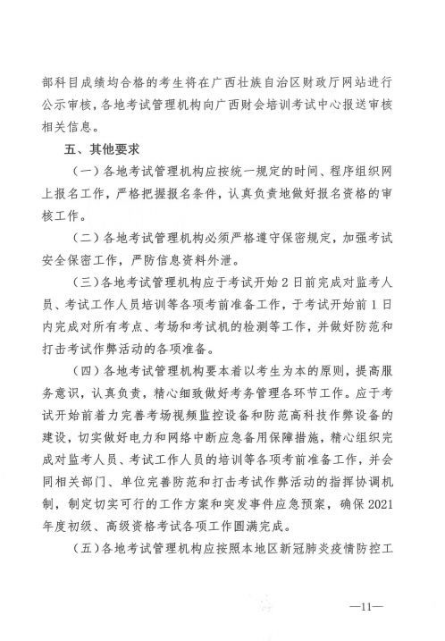 广西壮族自治区财政厅 广西壮族自治区人力资源和社会保障厅关于2021年度全国会计专业技术初级、高级资格考试广西考区考务日程安排及有关事项的通知